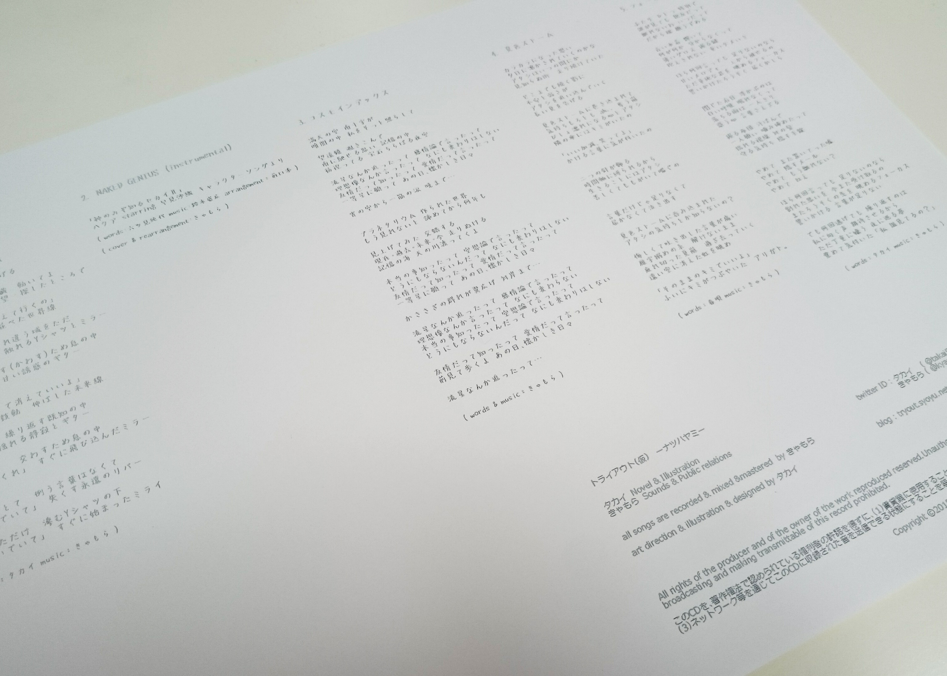 とまあさておき、歌詞の印刷が今さっき完了したので、とりあえず一息ついてる感じです。